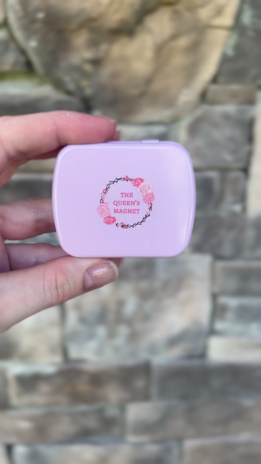 When you're not sporting your Queen's Magnets on a sash or as a brooch, keep your treasures secure in the Official TQM Magnetic Storage Box! This case seals shuts and opens on a hinge.